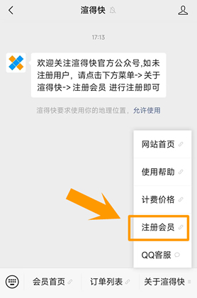 扫码关注微信公众号后,点击菜单->关于渲得快->注册会员,即可按原有流程注册.