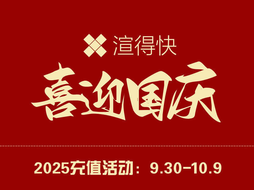 值此中秋国庆双节到来之际,渲得快充值活动详情如下: